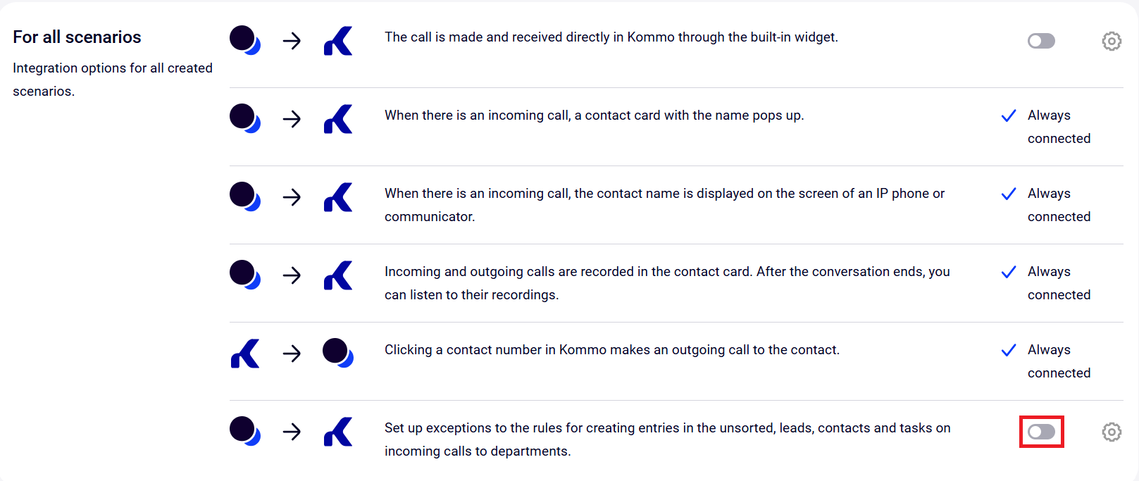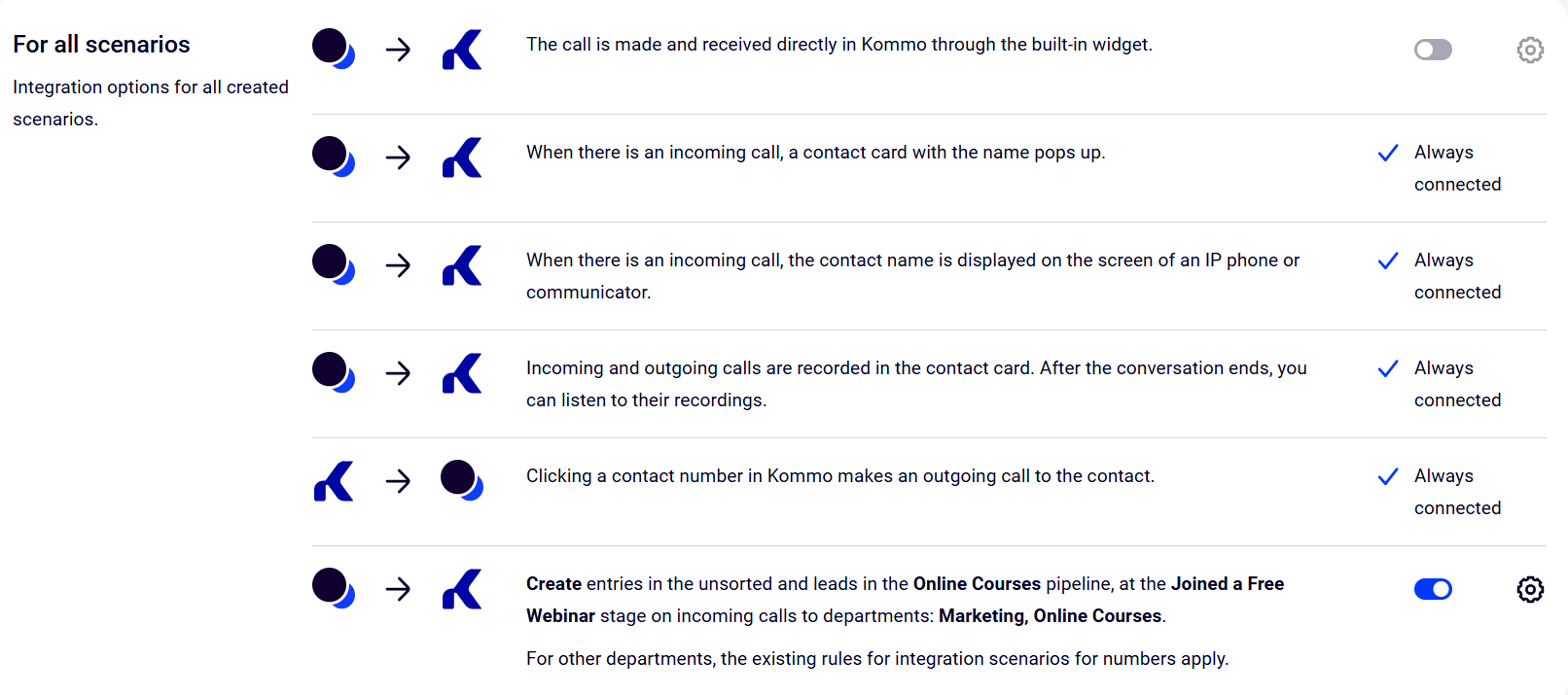 You may have multiple pipelines in Kommo for different departments. Set up lead creation in a pipeline depending on the department — for example, if a customer calls the sales department that only handles corporate customers, the lead will be created in a separate pipeline.