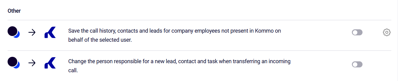 - the call history of your employees who are not in Kommo will be saved under a selected user. This option can be used if not all managers are matched or if you have employees who do not work in Kommo but may call customers. For example, a courier does not need a Kommo account but they are still involved in the sales process and may call the client. To track this stage, select the user under whose name the call history and recordings will be saved in Kommo.