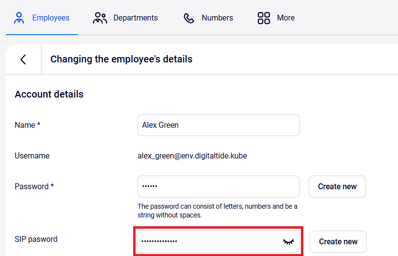 4. Reconfigure employees’ SIP phones. To do this, in the SIP phones settings, specify the new authorization server from the Redundant communication server domain column.