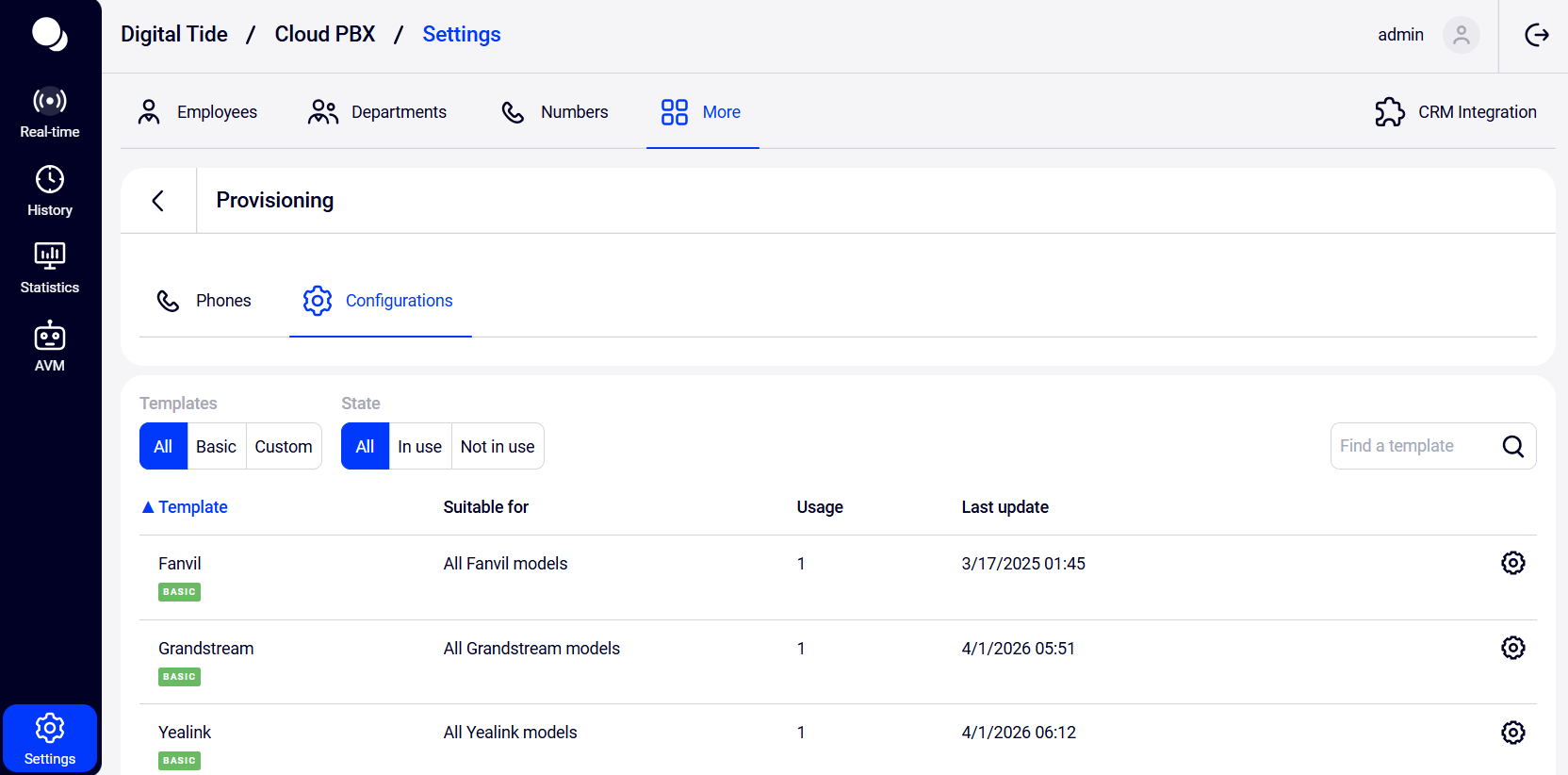 If your company has hundreds of SIP phones, manually setting them up for calls in Cloud PBX can take several days or even weeks. With provisioning, all devices are set up automatically in just a few minutes, without errors or extra steps.