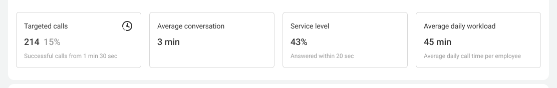 • Targeted calls — how many calls lasted within the defined duration range. This metric can be customized. See more details in the article about metric calculation;