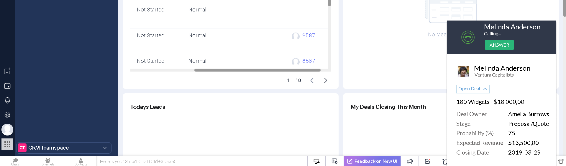 The widget appears directly in the Zoho CRM interface on the first ring. Even before the manager clicks Answer, they will already see: